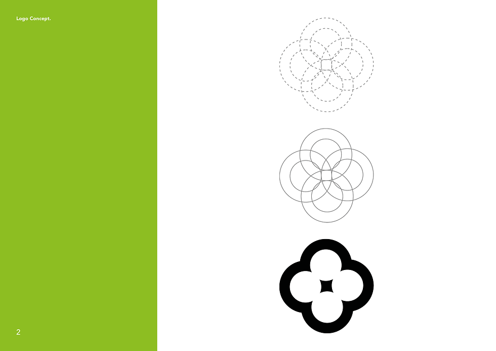 The original concept for the logo was to create something that symbolizes Hoam Grown in an effective manner, with the use of a combination mark. The initial idea for the primary mark of the logo was to create a flower using nothing but shapes with Adobe Illustrator, primarily the circle shape. Overlapping four circles then using the shape builder tool.